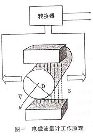 如圖一,當(dāng)導(dǎo)電流體以平均流速V(m/s)通過(guò)裝有一對(duì)測(cè)量電極的一根內(nèi)徑為D(m)的絕緣導(dǎo)管內(nèi)流動(dòng)時(shí),該管道處于一個(gè)均勻的磁感應(yīng)強(qiáng)度為B(T)的磁場(chǎng)中,那么在一對(duì)電極上就會(huì)產(chǎn)生感應(yīng)電動(dòng)勢(shì)E(V),它的方向垂直于磁場(chǎng)和流體的方向。