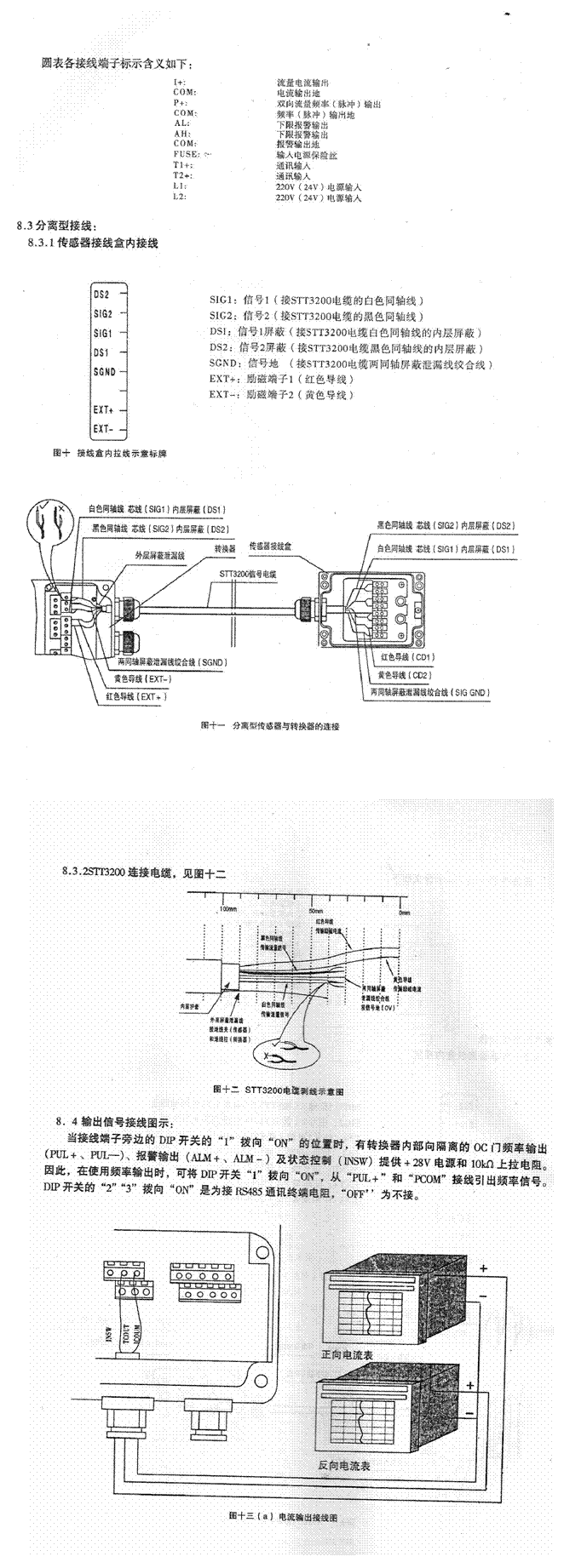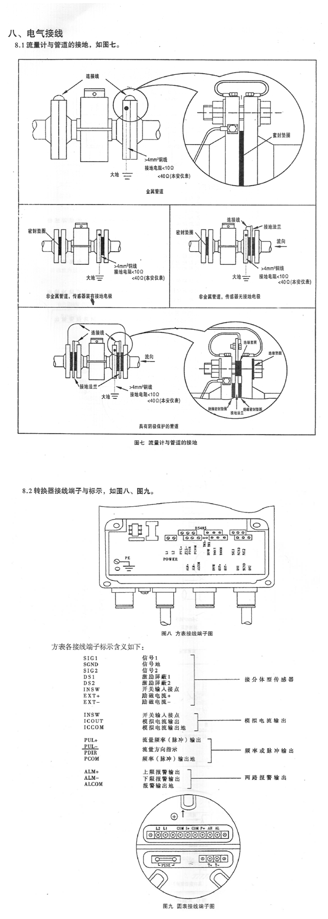 4.9連接電纜:分離型電磁流量計(jì),傳感器與轉(zhuǎn)換器之間用信號(hào)電纜連接,電纜長(zhǎng)度最長(zhǎng)應(yīng)小于100MM,本公司隨表免費(fèi)提供10M電纜,不足部分需訂貨。